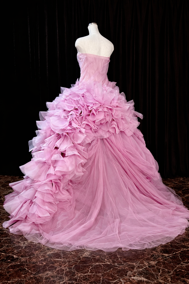 サイズ補正なしのUS-2オリジナルサイズのヘイリーペタルピンクです。又、左ウエストにトレーンを寄せ上げられるバッスル加工もヴェラウォンブライドにてオプション加工済みです。 コンディションは大変良好です。両脇フリルの高さも十分にあり、オーナー様の丁寧な取り扱いが伝わる一着です。高品質なヴェラウォンヘイリーをウエディングドレスお譲りやメルカリ、委託販売などでお探しの方はお気軽にお問合せ下さい。