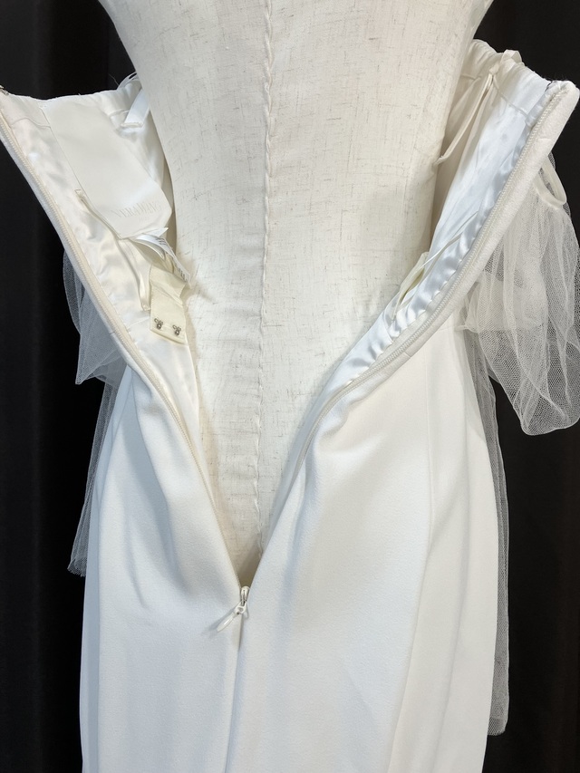 ⑦ 付属品について・・・ブランドカバー&ハンガー、オーダーカードなどは付いていません。お渡しの際は立体ドレスビニールカバーとドレス用ハンガーをお付けします。