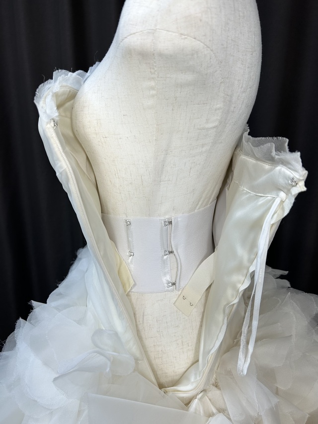 こちらのドレスは当社提携の名古屋市内のドレスサイズ補正アトリエにて条件付きで有料試着が可能です。(試着料金は3,300円。アトリエにて直接お支払い頂きます。)