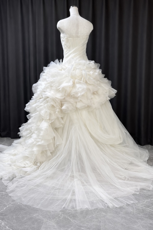 個人間ベースのお譲り(メルカリなどのフリマサイトでの購入も)ではヘイリーは再度専門の会社に大体2~3万円位の料金を支払って全体をプレスし直さなければ利用が出来ません。当社の委託販売で取り扱っていますヴェラウォンヘイリーにはほとんどのヘイリーに「利用前一回プレミアムドレスプレスサービス」がご購入サービスとして付けられています。この差額を加算して値段設定をしているわけではありませんのでトータルコストとコンディションを比べると断然当社のヘイリーの方が価格的に大きなメリットがございます。