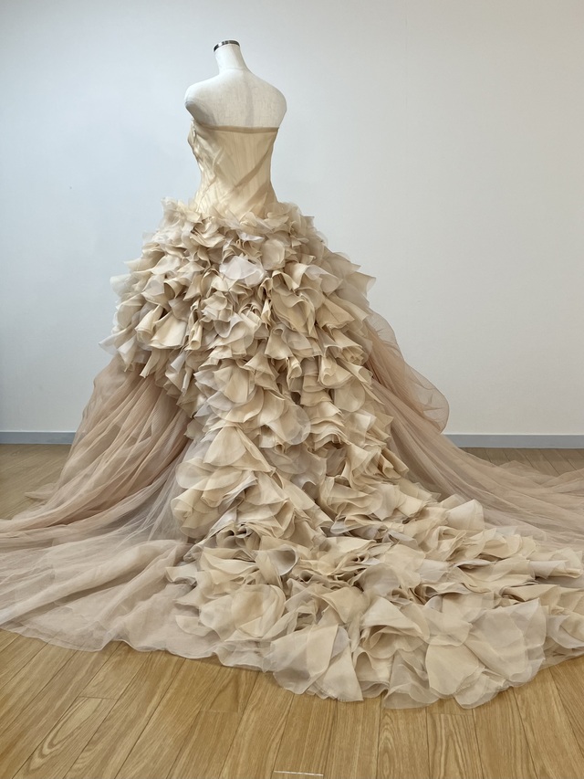 こちらのドレスは当社提携の名古屋市内のドレスサイズ補正アトリエにて条件付きで有料試着が可能です。(試着料金は3,300円。アトリエにて直接お支払い頂きます。)