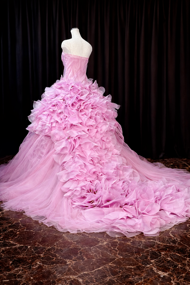 サイズ補正なしのUS-2オリジナルサイズのヘイリーペタルピンクです。又、左ウエストにトレーンを寄せ上げられるバッスル加工もヴェラウォンブライドにてオプション加工済みです。 コンディションは大変良好です。両脇フリルの高さも十分にあり、オーナー様の丁寧な取り扱いが伝わる一着です。高品質なヴェラウォンヘイリーをウエディングドレスお譲りやメルカリ、委託販売などでお探しの方はお気軽にお問合せ下さい。