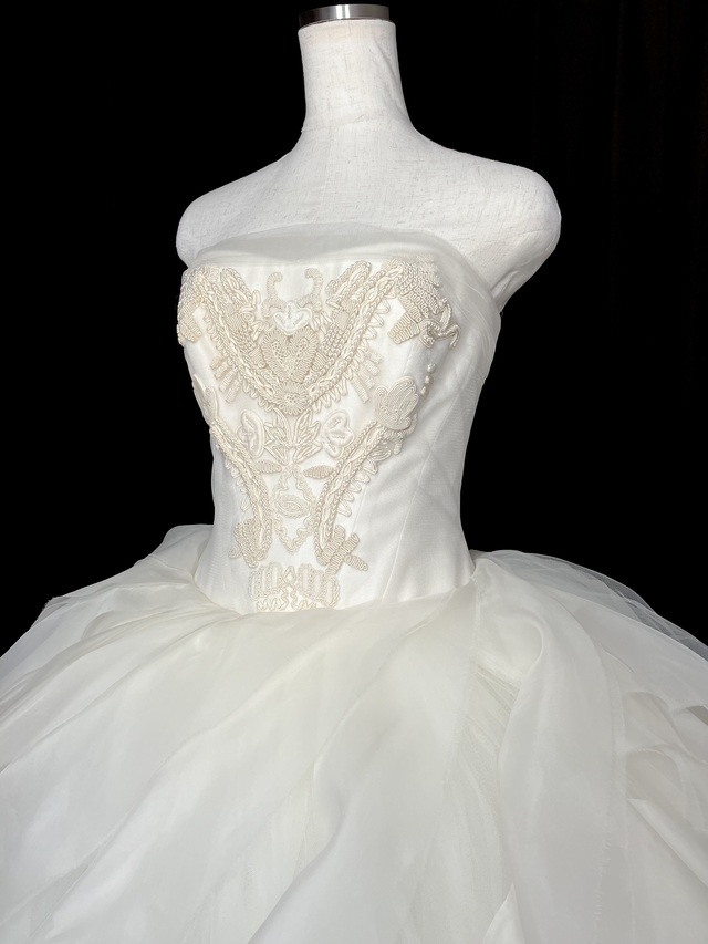 サイズ補正のないオリジナルサイズのリーゼルUS-6です。スカートのボリューム感もあり、大変状態としては良好な一着です。US-4ではバスト周りがきつい可能性のある方などはUS-6をベースにサイズ補正調整されるという方法もお勧めです。ファーストオーナー様からお預りで38万円のUS-6は価格的にも理想な設定を頂いております。