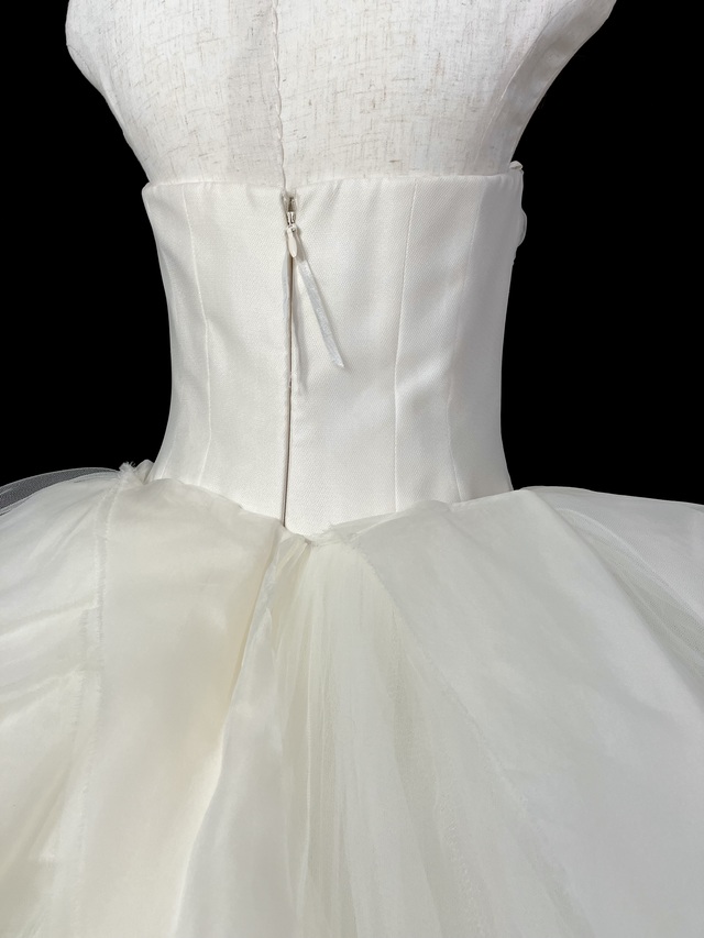 ※一枚目右側フリル横に4センチほどの補修ヶ所がありますが外観からは気付かないレベルです。内側に数か所補修ヶ所がありますが外観からは全く見えないので利用にも影響ありません。ボリューム感もあり全体コンディションは非常に良好な一着です。