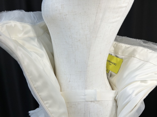 オーナー様がニューヨークのVERAWANG HAUTEでオーダー購入したヘイリーです。ロゴも付属ブランドカバー類も最新のHAUTEバージョンの希少な一着です。コンディションは大変良好で、US-4をほぼUS-2に近付けたサイズ補正が施されております。オーダー時に合わせて購入したロングベール(VERAWANGのロゴなし)も一緒にお渡します。